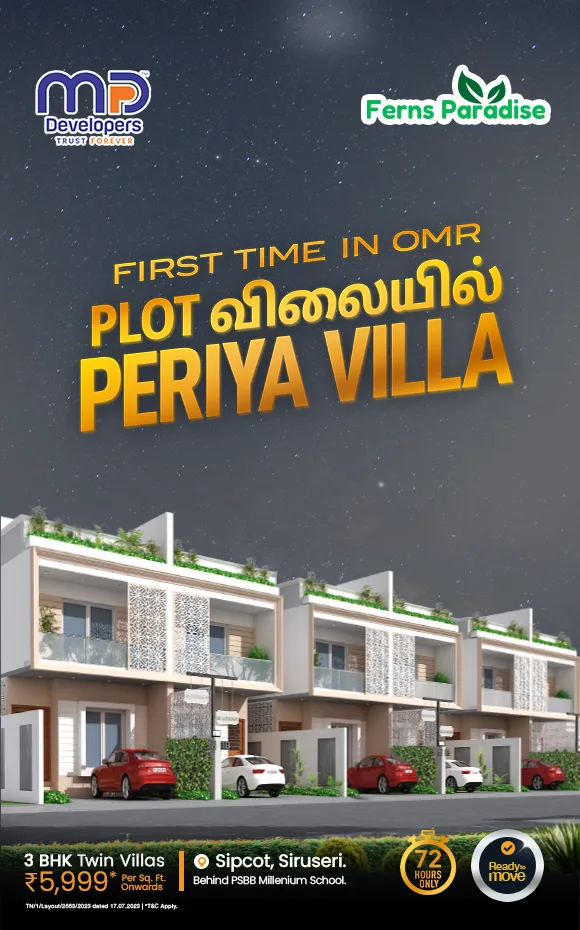 Looking for your dream villa in OMR? The OMR corridor, known for its strategic location and modern infrastructure, offers excellent options for homebuyers. Villas in OMR and surrounding areas like Siruseri and Navalur are becoming increasingly popular due to their proximity to IT hubs, schools, hospitals, and shopping centers. One of the standout developments in the region is MP Ferns Paradise, located in Siruseri. This project offers luxurious 3 BHK villas with spacious layouts, modern amenities, and high-quality construction. These villas are ideal for families seeking comfort, privacy, and a peaceful living environment. If you’re specifically looking for 3 BHK villas for sale in Siruseri or Navalur, you’ll find affordable options with a budget price of Rs. 5999 per sq ft. The villas are designed to offer ample natural light, well-ventilated spaces, and excellent connectivity to nearby workplaces and schools. Investing in a villa in Navalur or Siruseri offers a perfect blend of luxury, convenience, and value for money, making it an ideal choice for both homebuyers and investors.