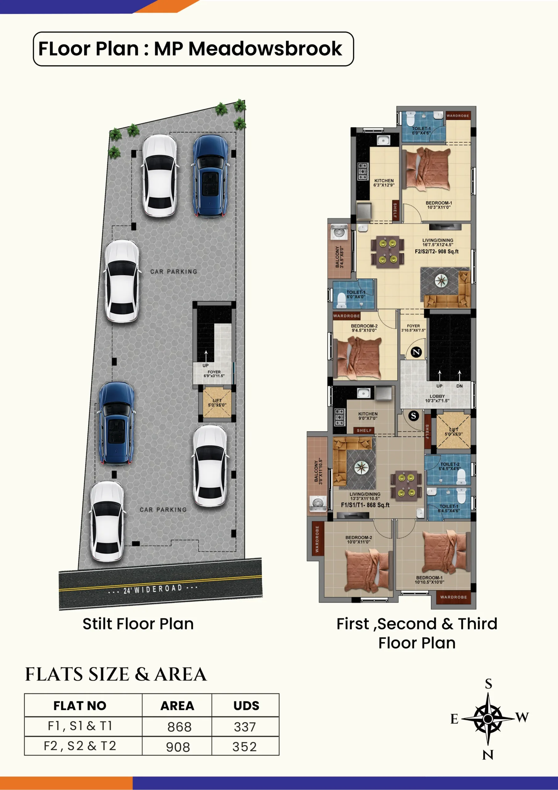 The 2 BHK apartments range from 868 to 908 sq.ft.